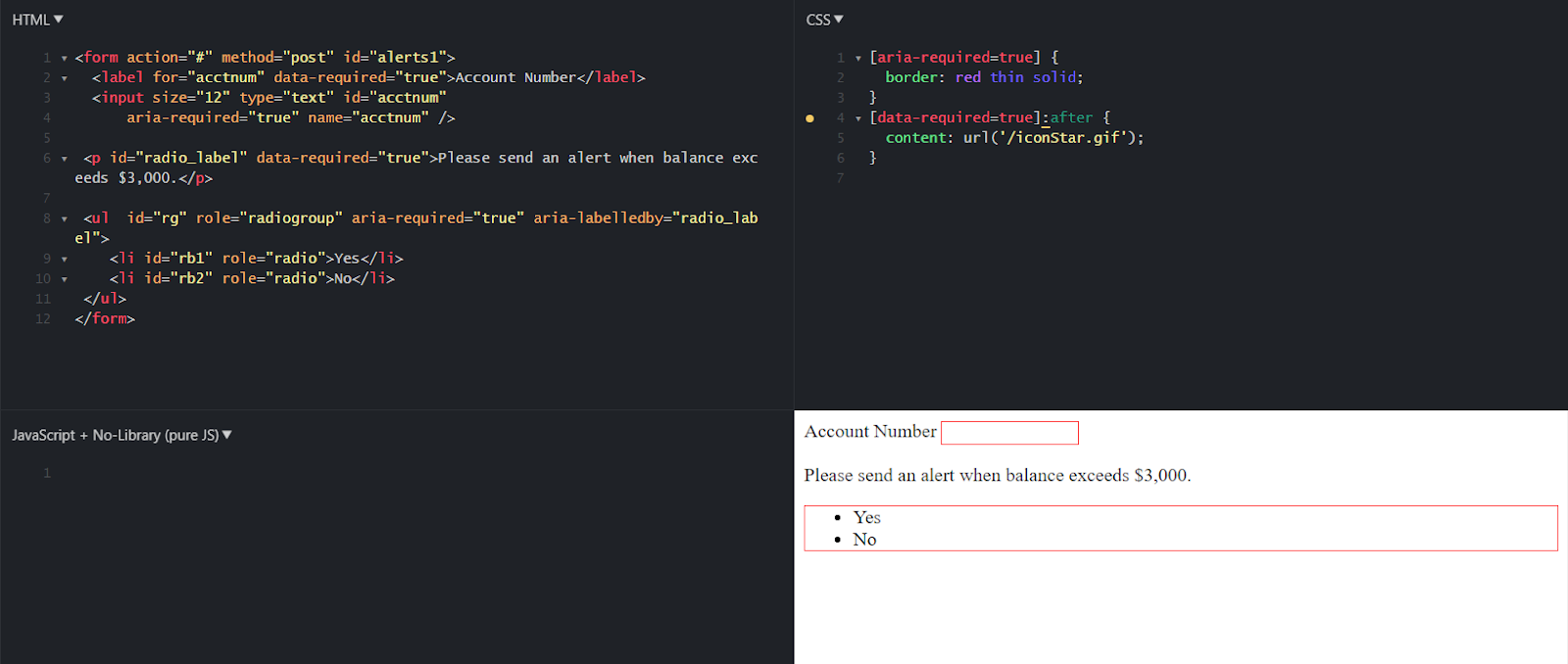 5. Identificación de un campo obligatorio con la propiedad aria-required