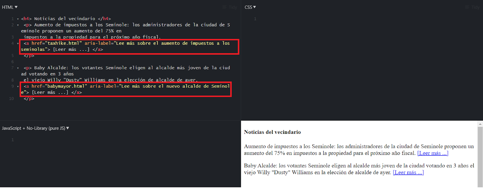 7. Uso de aria-label para fines de enlace